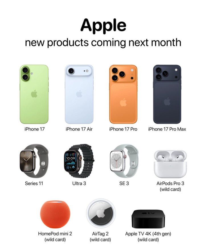 除了iPhone 17系列手机,本次发布会预计还将推出Apple Watch Series 11、Apple Watch Ultra 3、AirPods Pro3等新品。虽然邀请函上并没有直接给出关于这些产品的明确线索,但从苹果的产品布局和发展趋势来看,这些新品也有望在功能、设计等方面迎来重大升级。