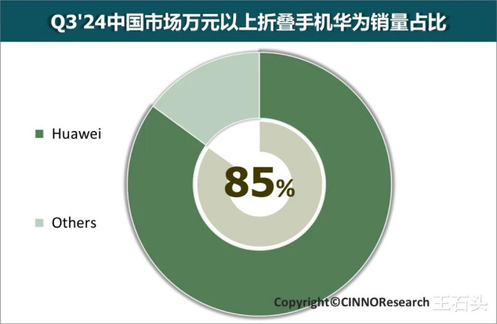 根据调研机构数据显示,华为在万元以上折叠屏手机市场的销量占比达到了85%。