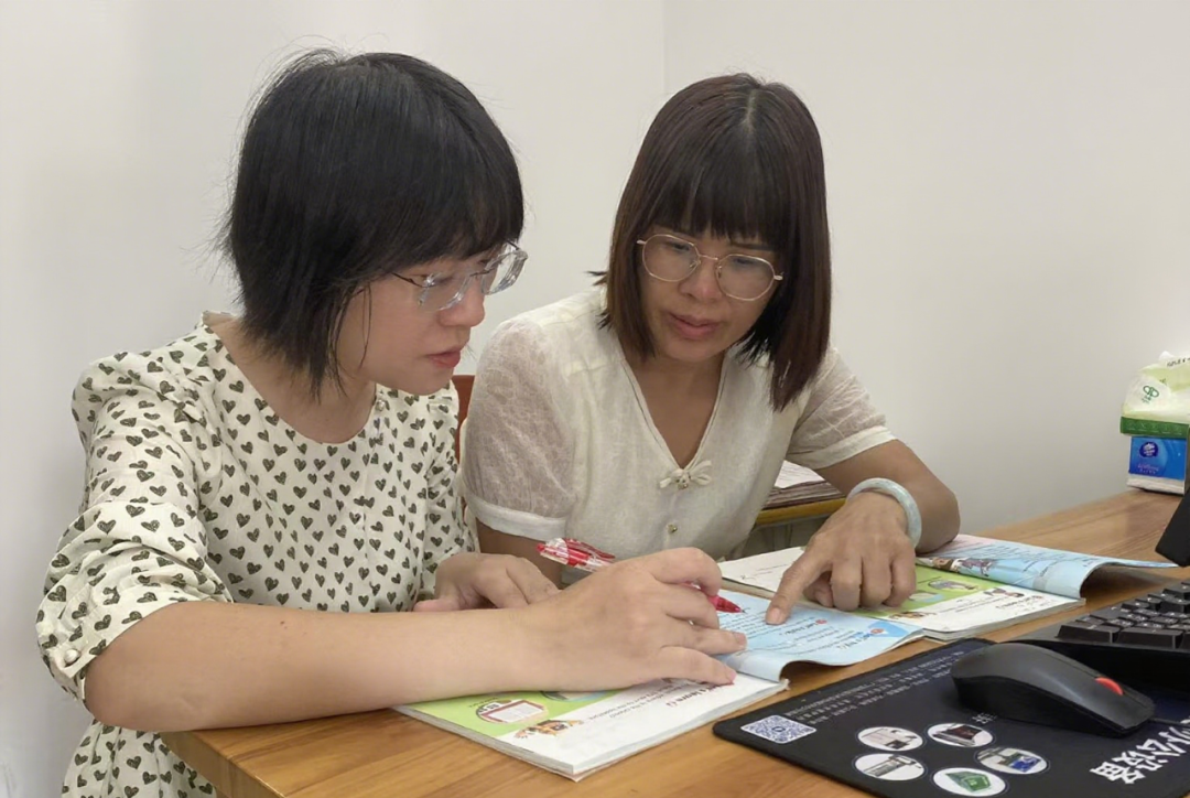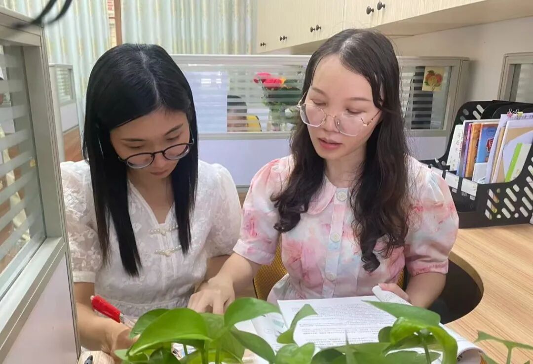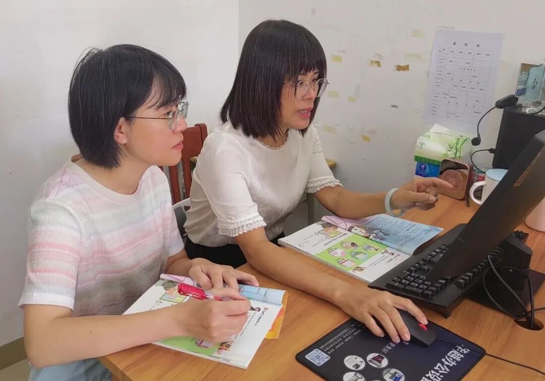 在广宁县第六小学“青蓝工程”的师徒帮扶画卷里,英语组的陆芬老师与胡可莹老师,也组成了另一组充满活力的帮扶对子,以深度教研与协同合作,书写着同样鲜活的成长篇章。