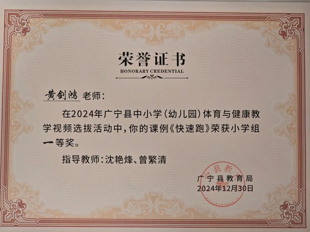 广宁县第六小学体育与健康二级教师 黄剑鸿