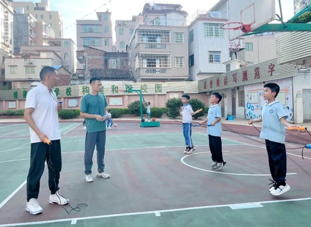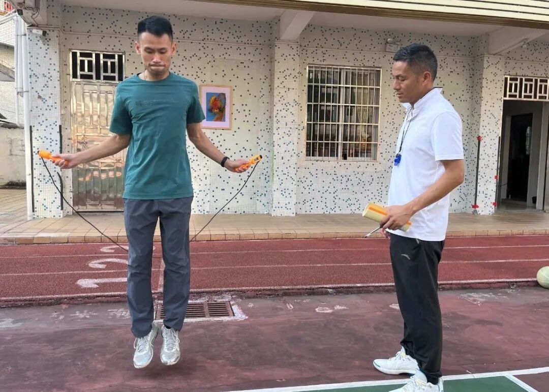 拥有23年教龄的沈艳烽副校长与青年教师黄剑鸿老师是师生口中的“金牌组合”。在“青蓝工程”的纽带联结下,沈艳烽副校长将课堂组织诀窍、精准到位的动作示范方法以及跳绳训练相关技巧,向黄剑鸿倾囊相授,同时传递对教育事业的热爱与责任。