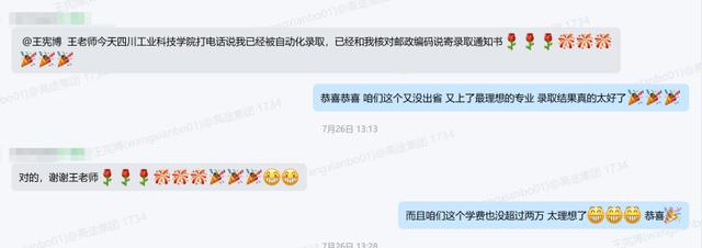 录取结果:本方案完全依据高途志愿系统方案出具,汇总三年录取数据科学分析,调整方案合理填报,最终捡漏录取概率1%,高于历年录取位次高于该考生近两万位的四川工业科技学院机械设计制造及自动化专业。考生录取到了对于理工科男生非常好就业的工科专业,且学校位于四川省内,同时学费也低于家长预期的两万元,家长对录取结果非常满意。