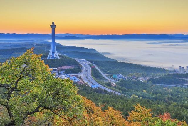 珲春防川,“一眼看三国”。开车去珲春,直奔防川景区。登上龙虎阁远眺,壮阔的图们江就在脚下,对岸清清楚楚标着不同国家——左边俄罗斯的哈桑镇,右边朝鲜的豆满江市,脚下的图们江就是国界线。这“一眼看三国”的场面,又震撼又让人心潮澎湃!