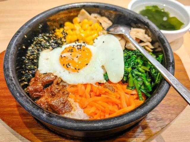 石锅拌饭不能少!“全州拌饭馆”走起。滚烫的石锅滋滋响着端上来,五颜六色的蔬菜(豆芽、胡萝卜、菠菜啥的)铺满饭上,中间卧个诱人的溏心蛋。赶紧戳破蛋,趁热飞快搅拌,让辣酱、蛋液、蔬菜和底下焦香的锅巴饭充分混合。每一勺送进嘴,都是碳水的满足和锅巴的焦香,口感丰富到停不下来,只想埋头猛吃。