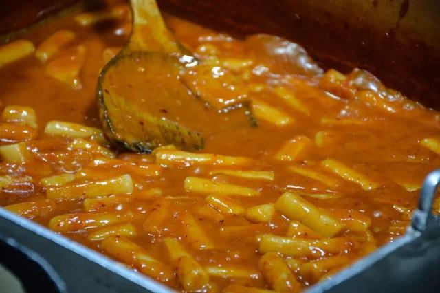 辣炒年糕和堆成小山的紫菜包饭,这对老搭档在这儿卖得贼好。红亮亮的甜辣酱裹着Q弹的年糕条,嚼劲十足;紫菜包饭米饭紧实,馅料塞得满满当当,咬一口就是简单纯粹的满足感,让人想再来一个。